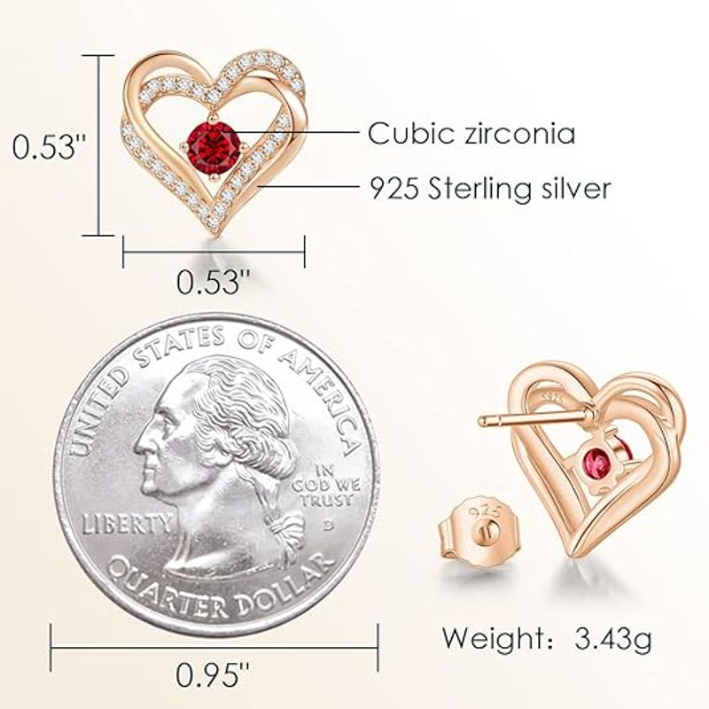 UNIQUE HEART-SHAPE DESIGN - The 2020 birthstone earrings feature an interlocking heart design that symbolizes love for each other. The heart stud earrings are sparkling Mother’s Day gifts for mom or grandmother, Valentine’s Day gifts for girlfriend or anniversary gifts for wife, Christmas gifts for girlfriend and best friend to express your love and commitment.